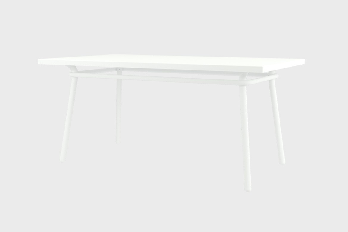 This large dining table can seat up to 6 persons and is carefully designed around a discreet yet relevant set of lines. The proportions used, its cleanness, flair, and the contemporaneous of its lines make it impeccable for use in indoor spaces. Made in aluminium and finished in oven cured paint, this table will stay useful for long, no matter the weather, or the use.