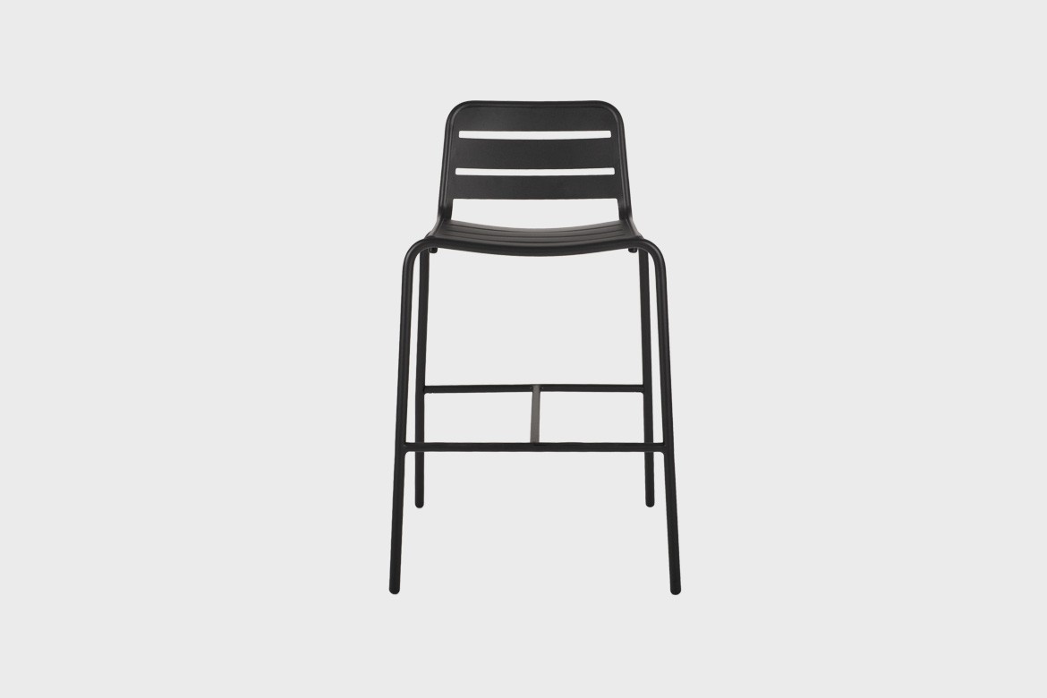 Vega bar armchair in full aluminium is a light and graceful object that is extremely functional. Wether for terraces or indoor spaces, Vega is great choice for its minimalist lines and contemporary flair. Built from recyclable aluminium which is then finished with a layer of oven cured paint, Vega is an example of environmentally friendly design, not only for the choice of materials, but also for the durability and easy or care.