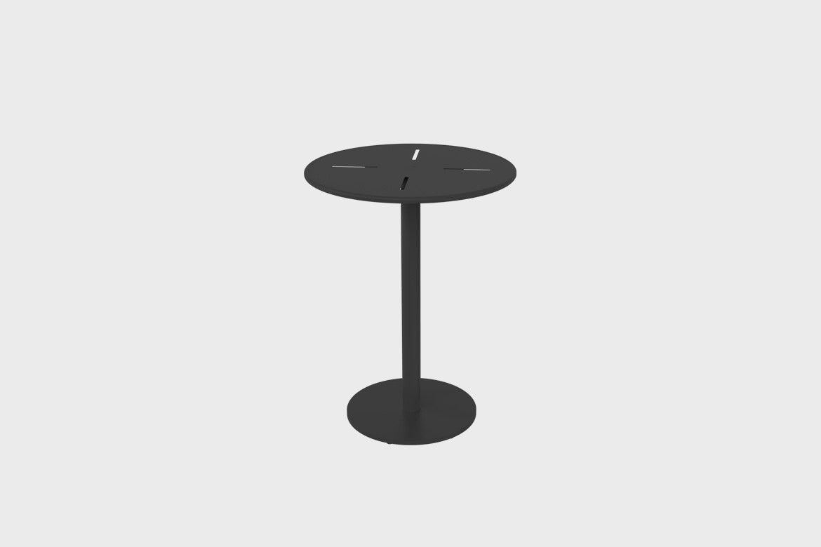 All Vega stands and tabletops are made on recyclable aluminium and finished with a handsome and tactile layer of oven cured epoxy, the cleanest and environmentally friendly paint known, and can withstand both heavy use and extreme weather.