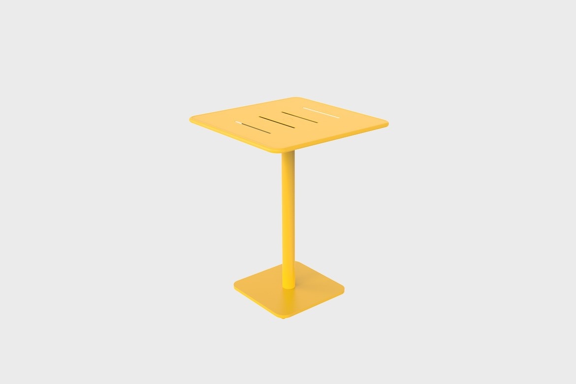 All Vega stands and tabletops are made on recyclable aluminium and finished with a handsome and tactile layer of oven cured epoxy, the cleanest and environmentally friendly paint known, and can withstand both heavy use and extreme weather.