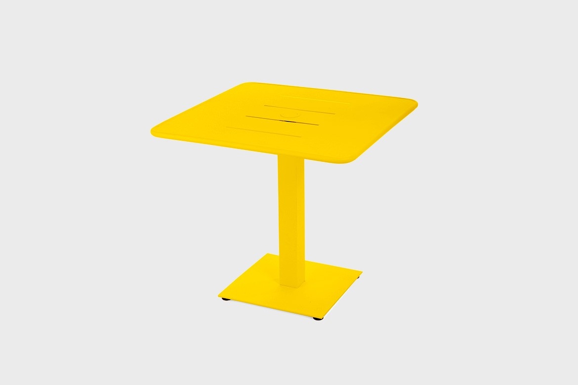 All Vega stands and tabletops are made on recyclable aluminium and finished with a handsome and tactile layer of oven cured epoxy, the cleanest and environmentally friendly paint known, and can withstand both heavy use and extreme weather.