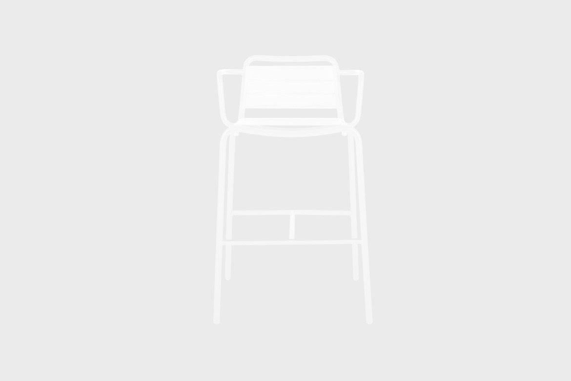Vega bar armchair is a light and graceful object that is extremely functional. Built from recyclable aluminium which is then finished with a layer of oven cured paint, the seat and back are cut from Batyline fabric and filled with hydrophobic foam, providing comfort and ease of use.