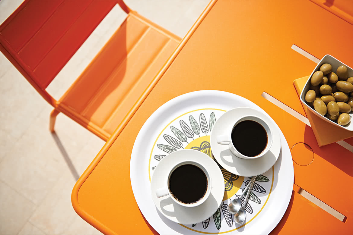 Tous les cadres et plateaux de table Vega sont fabriqués en aluminium recyclable et recouverts d'une couche de peinture cuite au four, la peinture la plus propre et la plus écologique qui soit. Avec le choix complet d'aluminium, d'osier, de Batyline ou de Batyline rembourré disponible pour l'assise et le dossier, Vega est la chaise la plus complète et personnalisable que nous ayons.