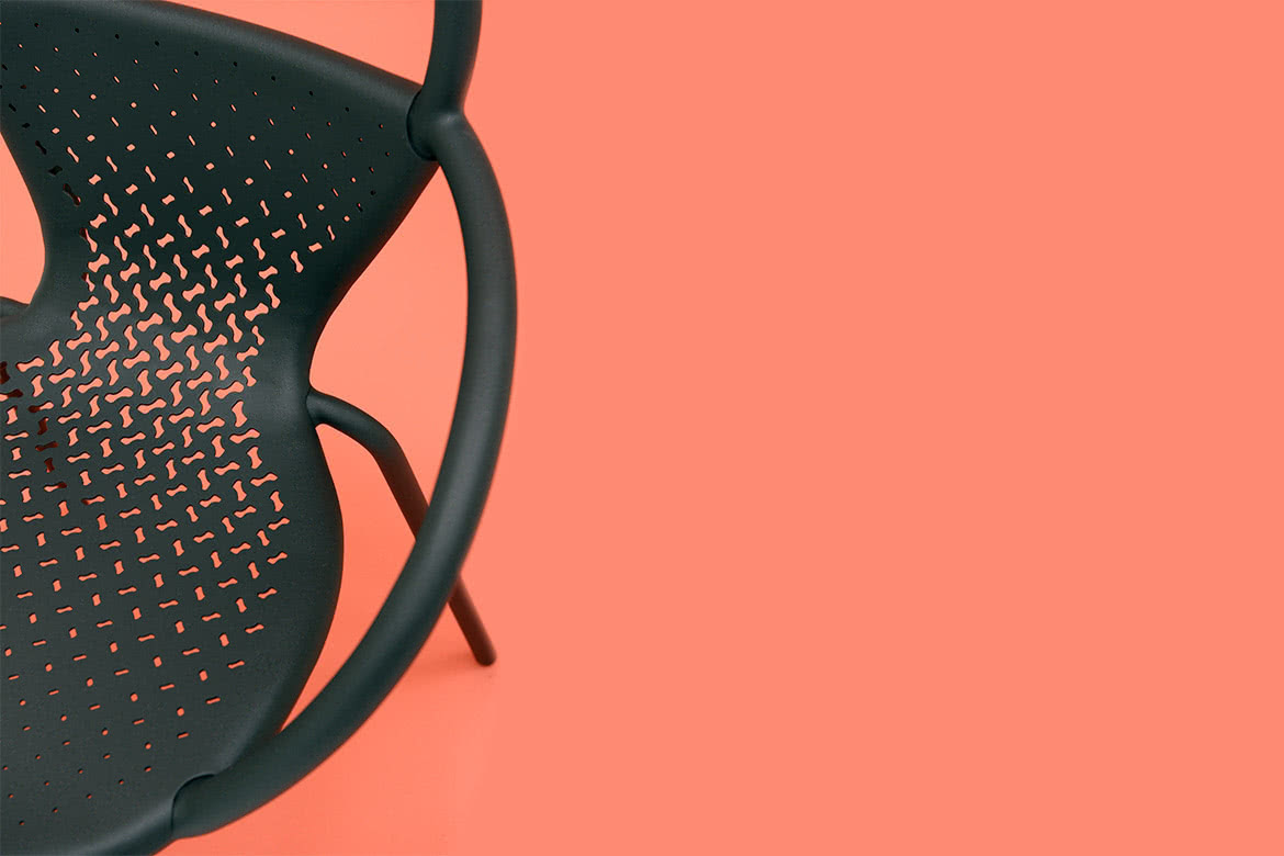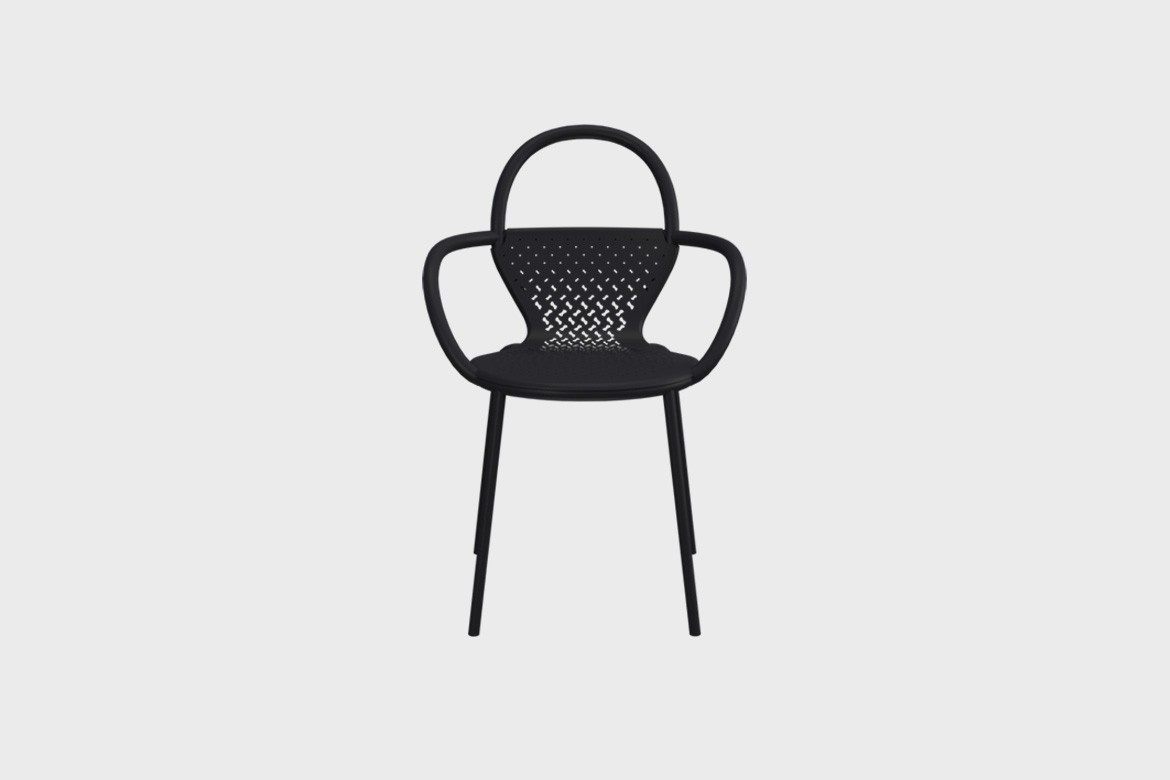 Selon Karim Rashid:"KOSE est un fauteuil café empilable qui répond aux besoins de l'intérieur comme de l'extérieur, le fauteuil KOSE est léger, confortable et résistant aux intempéries. Il se distingue par ses perforations uniques en forme de blob dans sa forme en aluminium revêtue de poudre, permettant à l'eau de s'écouler à travers la chaise plutôt que de s'accumuler."
