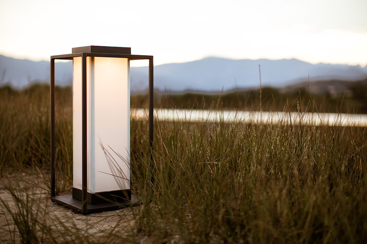 La version solaire de la grande lanterne à bougie. Nomade, elle vous suivra à l’extérieur comme à l’intérieur. Grâce à son tissu tendu, cette lampe solaire décorative d’extérieur diffuse un halo de lumière douce pour créer une atmosphère chaude. Son cadre en aluminium laqué de couleur charbon ou blanc est habillé d’une chaussette en tissu enduit blanc cassé et imperméable. Jusqu’à 9 heures d’éclairage.