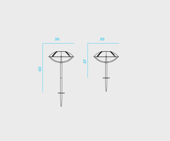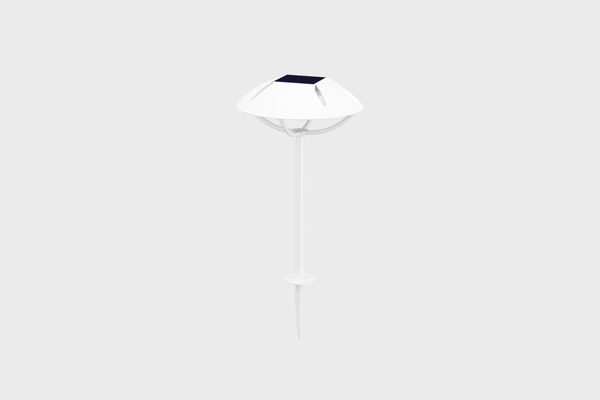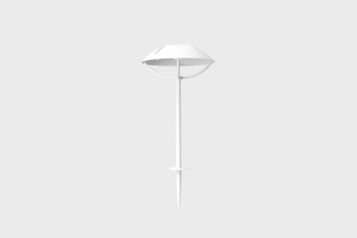 Véritable lampe de jardin solaire, La Lampe Parabole se plante directement dans la terre grâce à son pied effilé. Fabriquée entièrement en aluminium laqué de couleur charbon ou blanc, son chapeau en demi-sphère est percé de quatre ouvertures permettant une diffusion de la lumière tout autour de cette lampe d’extérieur. Ajustable à deux hauteurs (470 cm and 590 cm), elle éclaire jusqu’à 5 heures.