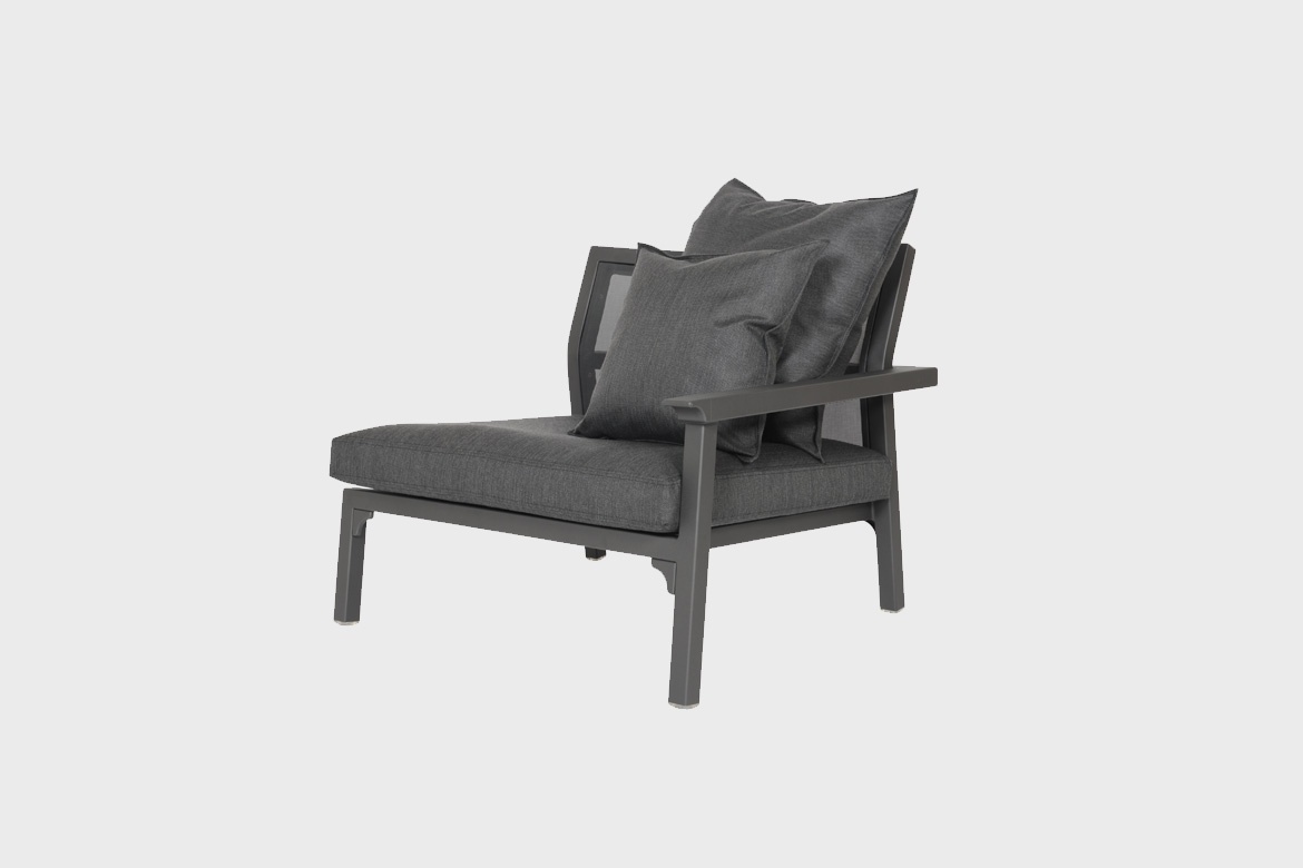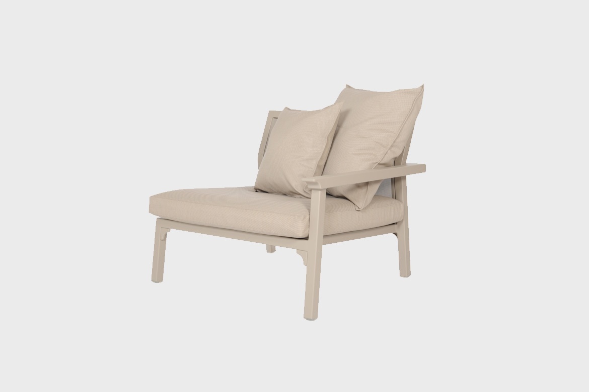 La conception modulable des canapés Classique permet différentes configurations selon les besoins de l'espace. La solution de conception du système, avec un clip en U qui relie les modules entre eux de manière simple et sûre, est facile à installer et à démonter. Les modules Classique sont ultralégers, leur réorganisation est simple et très rapide. Classique est fabriqué dans un cadre entièrement en aluminium et recouvert d'une peinture mate à la texture poudrée caractéristique de Maiori, une combinaison de matériaux qui assure légèreté, robustesse et durabilité.