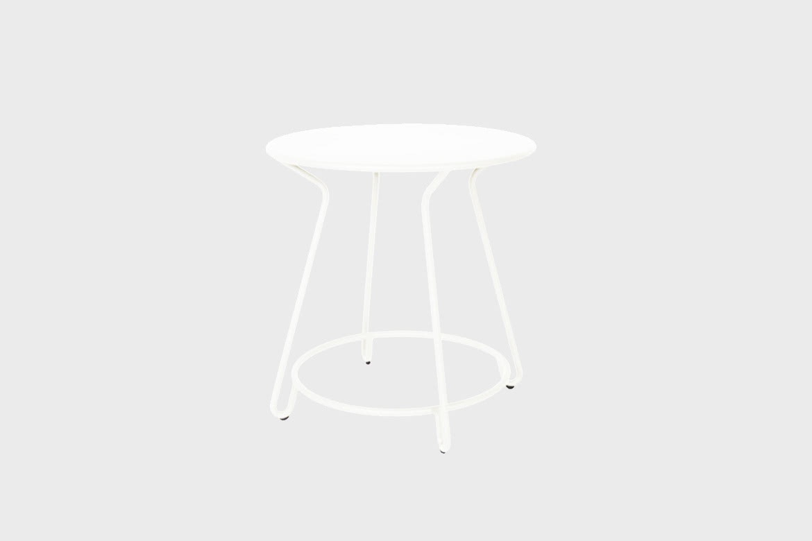 La table de bistrot Huggy, entourée des fauteuils de la même collection, s’harmonisera parfaitement sur une terrasse grâce à son diamètre idéal de 75 cm. Chaque pièce de Huggy suit une ligne conductrice. Basé sur une courbe continue qui dessine l'objet et lui donne une fonction unique dans la gamme.
