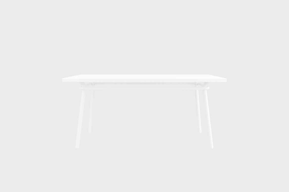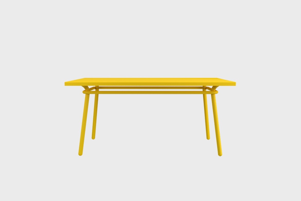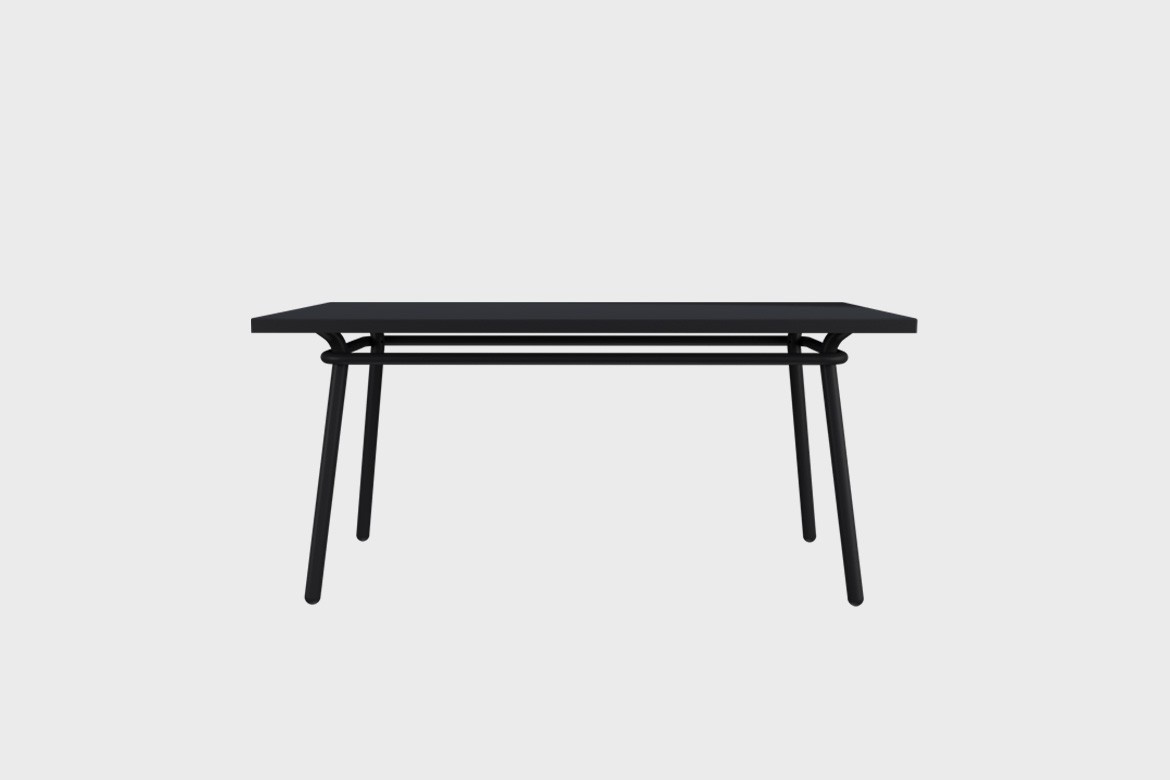 This large dining table can seat up to 6 persons and is carefully designed around a discreet yet relevant set of lines. The proportions used, its cleanness, flair, and the contemporaneous of its lines make it impeccable for use in indoor spaces. Made in aluminium and finished in oven cured paint, this table will stay useful for long, no matter the weather, or the use.