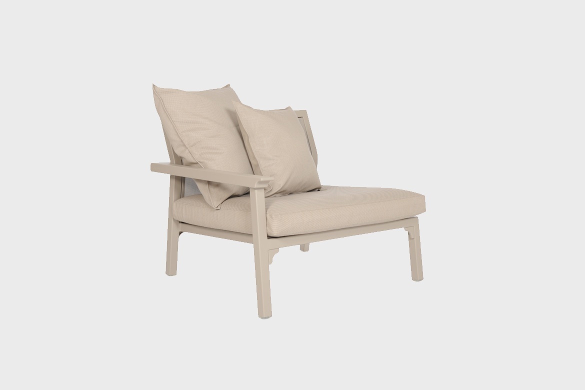 Classique modular sofas design makes possible for different configurations depending on spatial needs. The system design, with an U-clip that links the modules between them safely and simply, is easy to install and remove. Classique’s modules are ultralight, rearranging them is effortless and fast. Classique is made with a full aluminium frame and finished with Maiori’s signature powder coating texture matt paint, a combination of materials that ensure lightness, robustness and durability.
