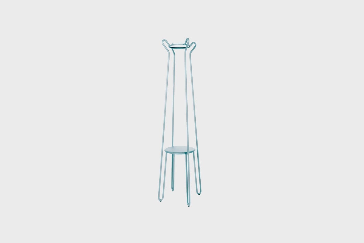 The Huggy coat hanger is a quirky object of unlimited pleasure. Useful, decorative and extremely pleasurable, it'll make a good service with a smile. Every Huggy piece is designed as a continuum of each other. Based on a continued curve that draws the object and gives it its unique function within the range.