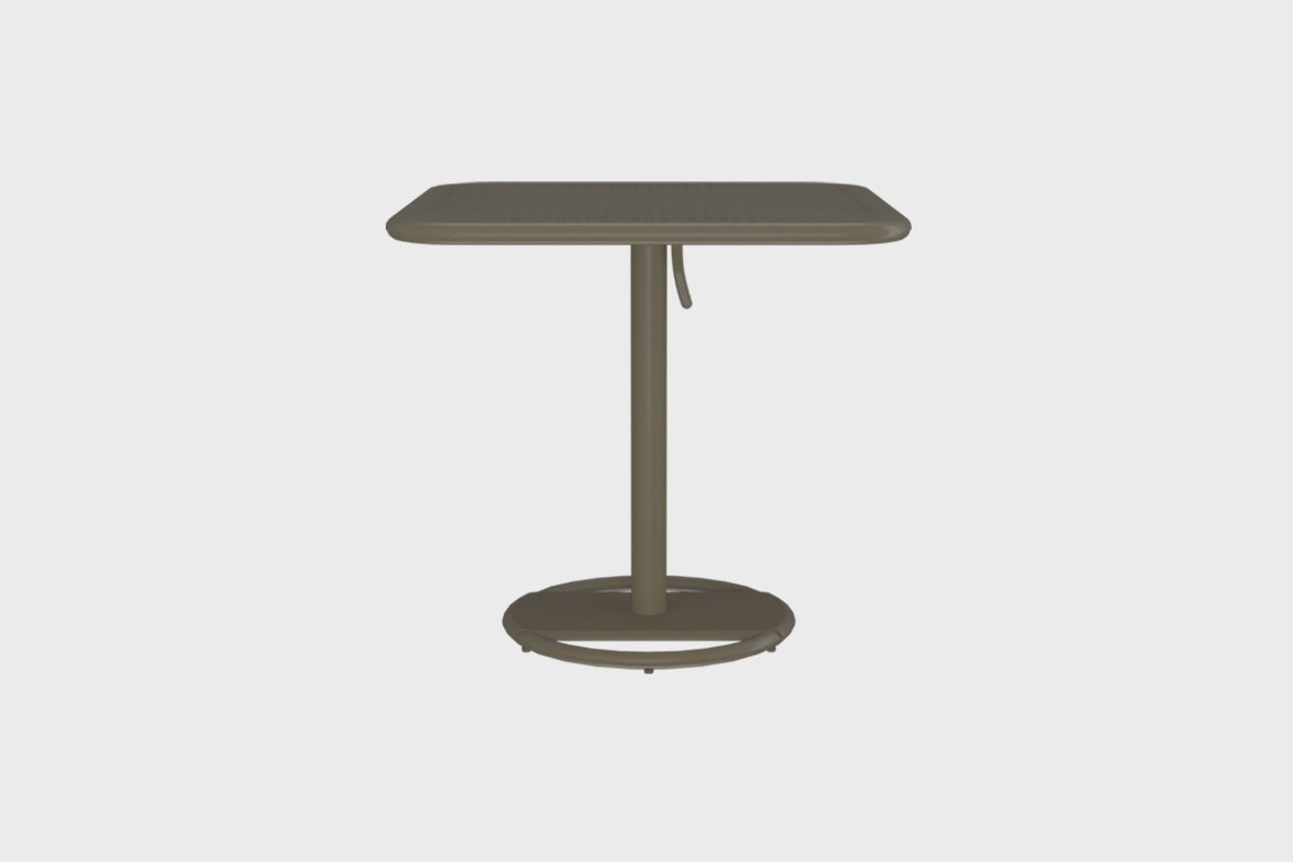 Kose tables feature an iconic, minimal silhouette, which serves with elegance while remaining affordable. Simultaneously embodying firmness and flexibility, Kose represents the "now”. Kose tables, with collapsible tabletops featuring blob-shaped perforations to let the rain trespass, are an example of understated and extremely utilitarian café design.