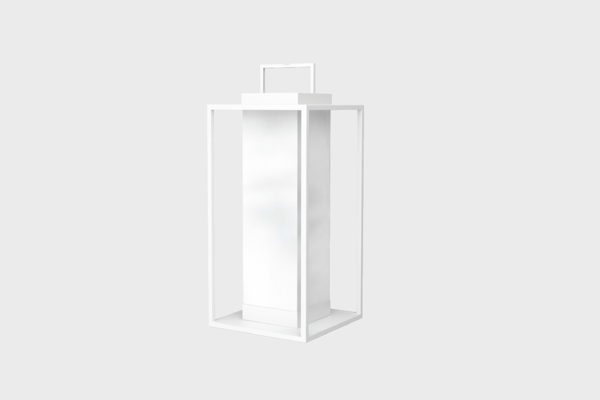 La version solaire de la grande lanterne à bougie. Nomade, elle vous suivra à l’extérieur comme à l’intérieur. Grâce à son tissu tendu, cette lampe solaire décorative d’extérieur diffuse un halo de lumière douce pour créer une atmosphère chaude. Son cadre en aluminium laqué de couleur charbon ou blanc est habillé d’une chaussette en tissu enduit blanc cassé et imperméable. Jusqu’à 9 heures d’éclairage.