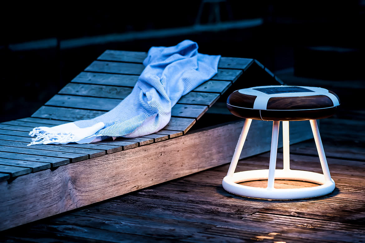 Coule de source, La Lampe Phare est un luminaire solaire haut de gamme entièrement autonome qui apporte la lumière et vous éclaire où que vous soyez. Oui, même au milieu de l’océan.Sur l'eau, La Lampe Phare s’allume instinctivement à l'heure bleue. Elle pimente le dernier bain des nageurs de nuit. Hors de l'eau et sur son présentoir, se distinguera en lumière des éclairages classiques d’extérieurs. Un disque ou notre d'aluminium T6 emblématique contient une unité d'éclairage de 300 lumens pour une lumière solaire autonome, embrassant une pièce en forme de tore en bois de teck. La Lampe Phare mêle artisanat, technologie de pointe et durabilité.